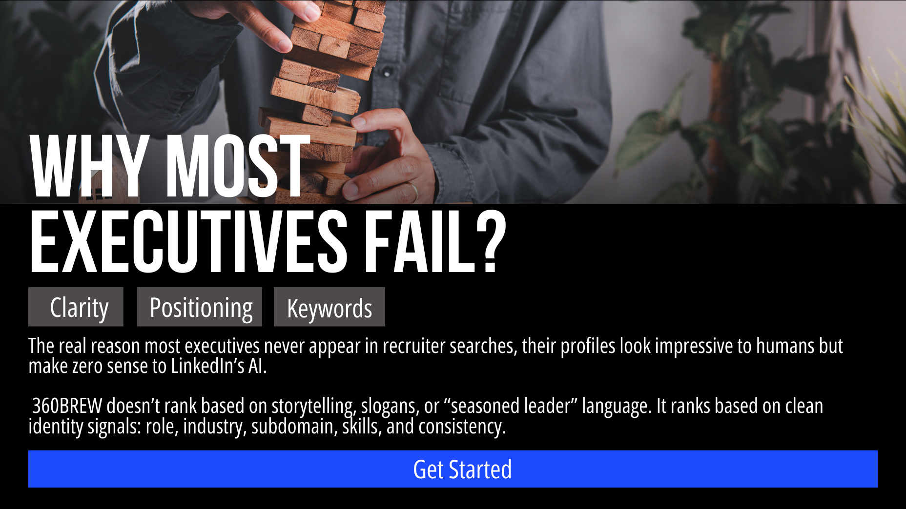 I’m someone who has spent years helping Executives secure the right opportunity in a market where visibility determines who gets opportunities. I’ve been on the inside of recruiting teams and search firms, watching brilliant leaders stay hidden simply because they do not know how to market themselves and the algorithm couldn’t understand their profile.