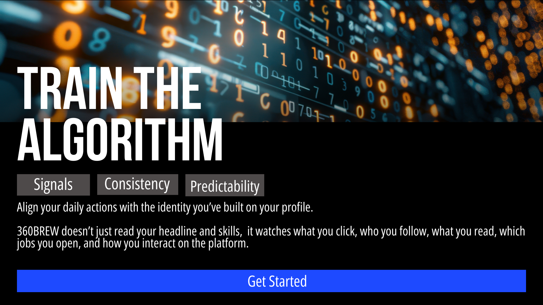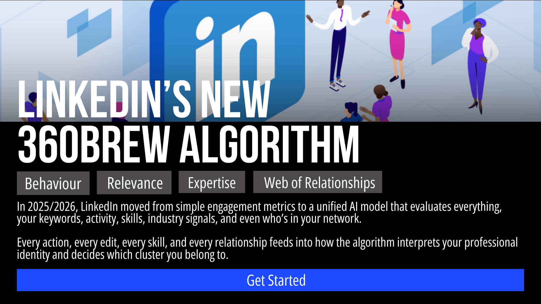 How to optimise your LinkedIn profile for the 360BREW algorithm, rank higher in recruiter searches, build a targeted keyword strategy, and train the algorithm through your behaviour, so you get more visibility, better job matches, and more interview invites without posting content.
